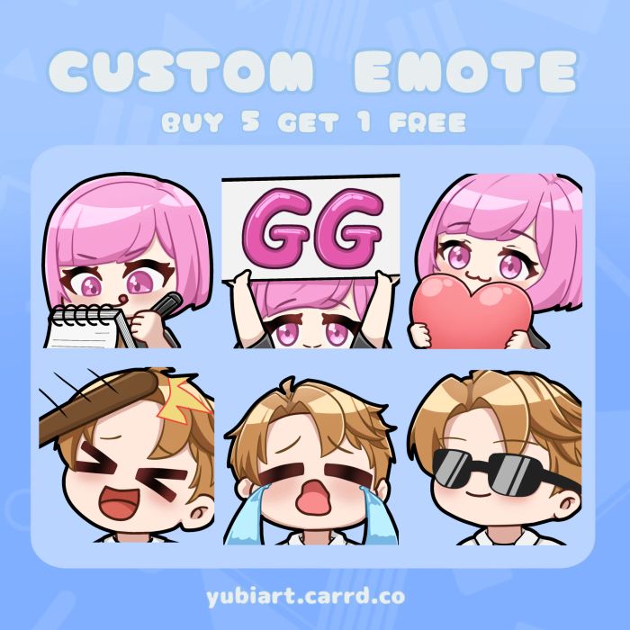 - Process takes 1-3 days for each emote. If the queue is a crowd, I'll let you know before I accept the order.